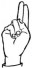 На ћирилици написано СЕРГЕЈ ЛУДОШКИ састоји се из 13 слова [?]. Исписано ћириличном једноручном азбуком за глувонеме: